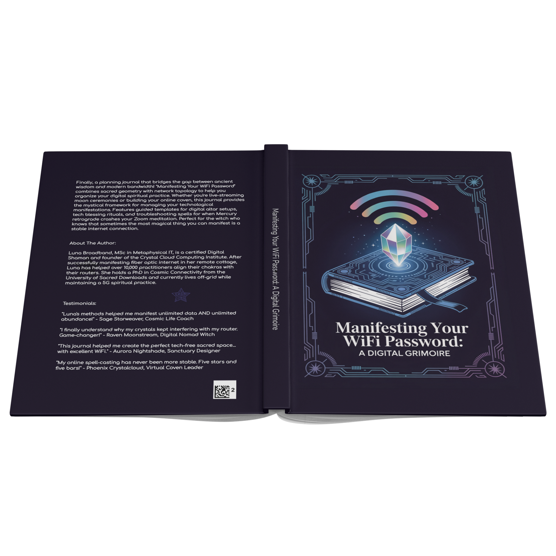 Get ready to laugh with this hilarious satirical hardcover journal! Features "Manifesting Your WiFi Password: A Digital Grimoire" cover - perfect for tech-savvy witches. Premium hardcover with soft-touch matte finish, 150 lined pages (75 leaves) with perforated tear-out pages. Size: 5.75"x8". Great gag gift for witches, pagans, or anyone struggling with internet connectivity!